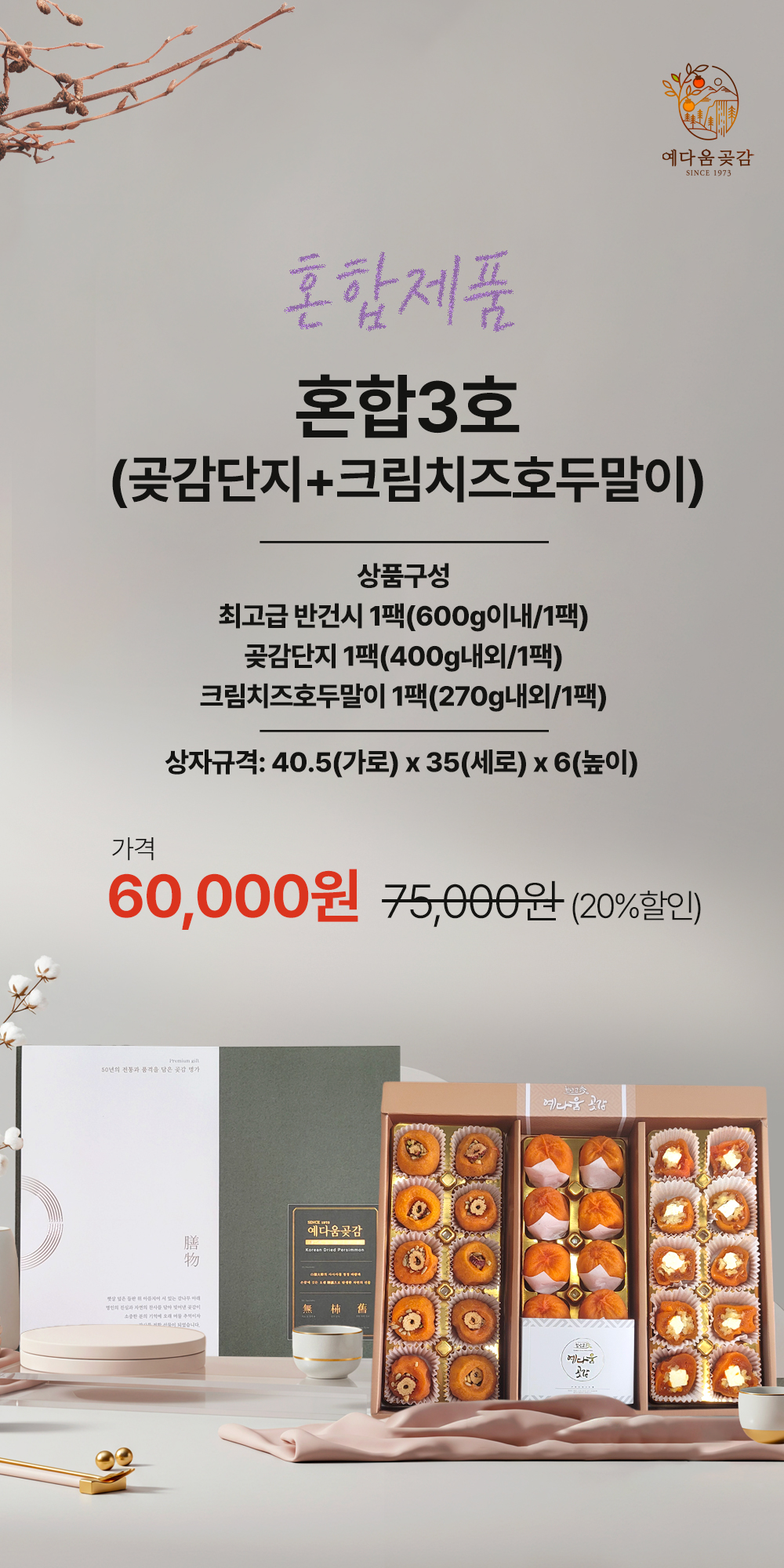 [예다움곶감] 상주곶감 혼합3호(반건시+곶감단지+크림치즈호두말이) 명절 가정의달 선물세트