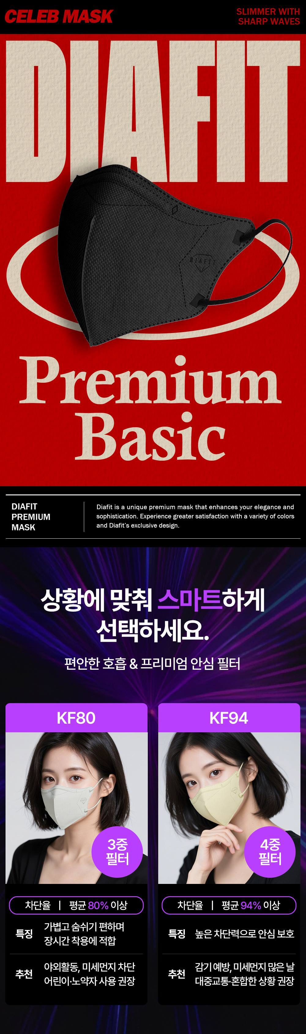 내추럴키스 다이아핏 KF94 마스크 컬러 25입 개별포장