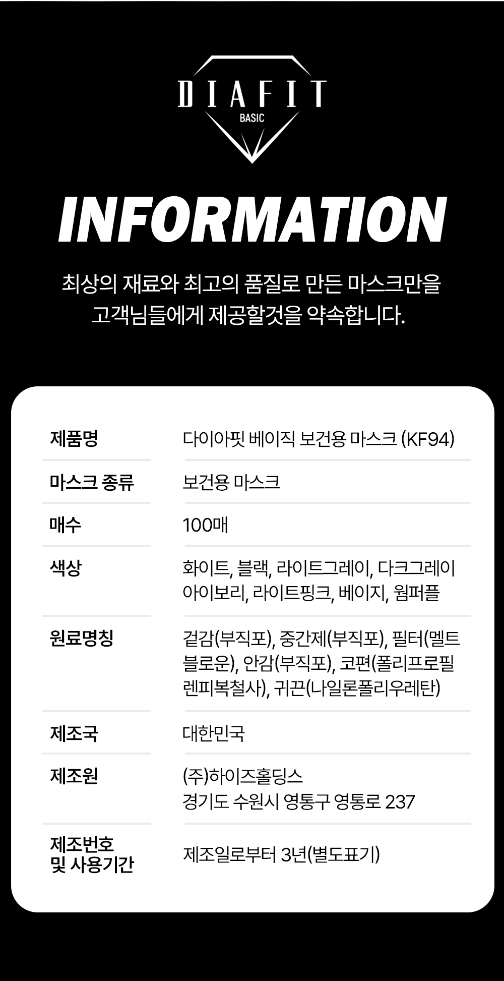 • 내추럴키스 다이아핏 KF94 마스크 컬러 100입 개별포장