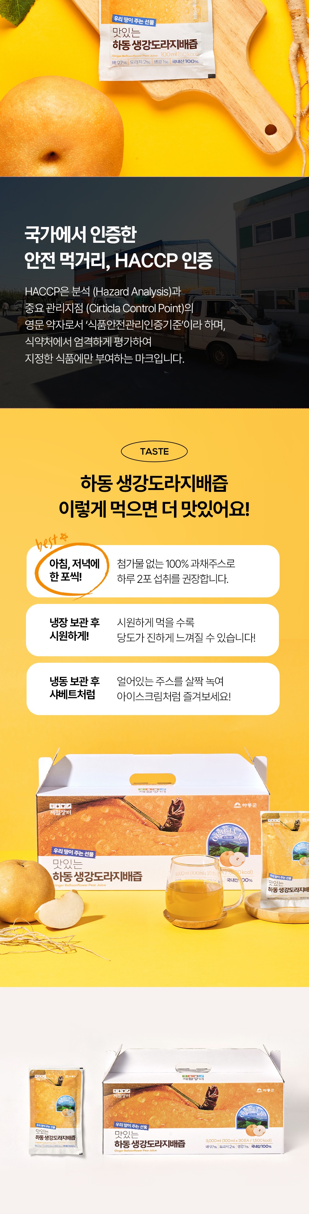 하동배(국내산) 97%, 도라지(국내산) 2%, 생강(국내산) 1%