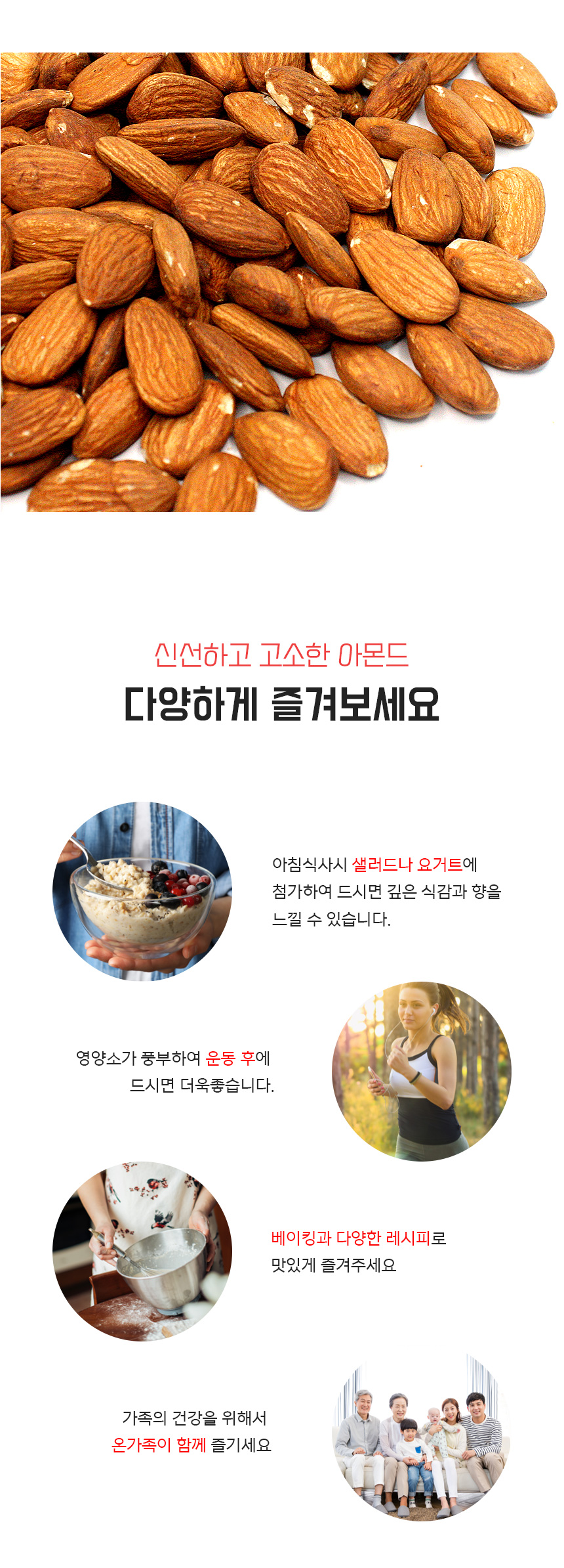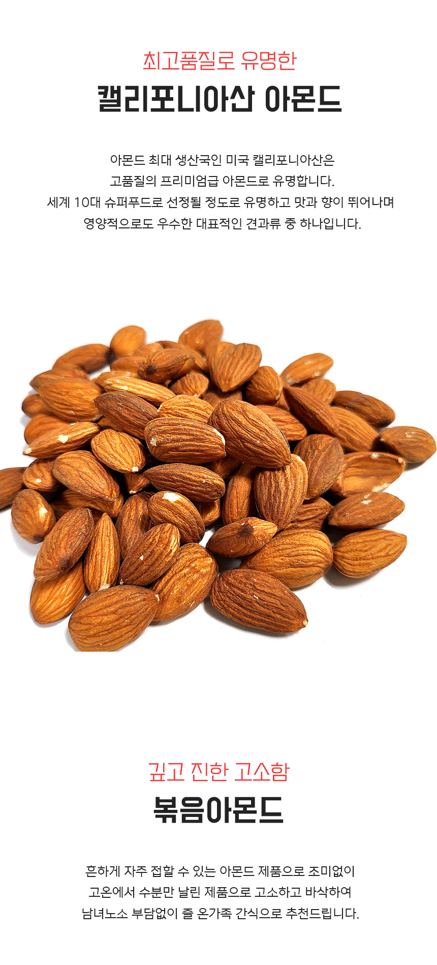 미국산 아몬드로 구워내어 바삭하고 고소한 영양간식으로 추천해드립니다.