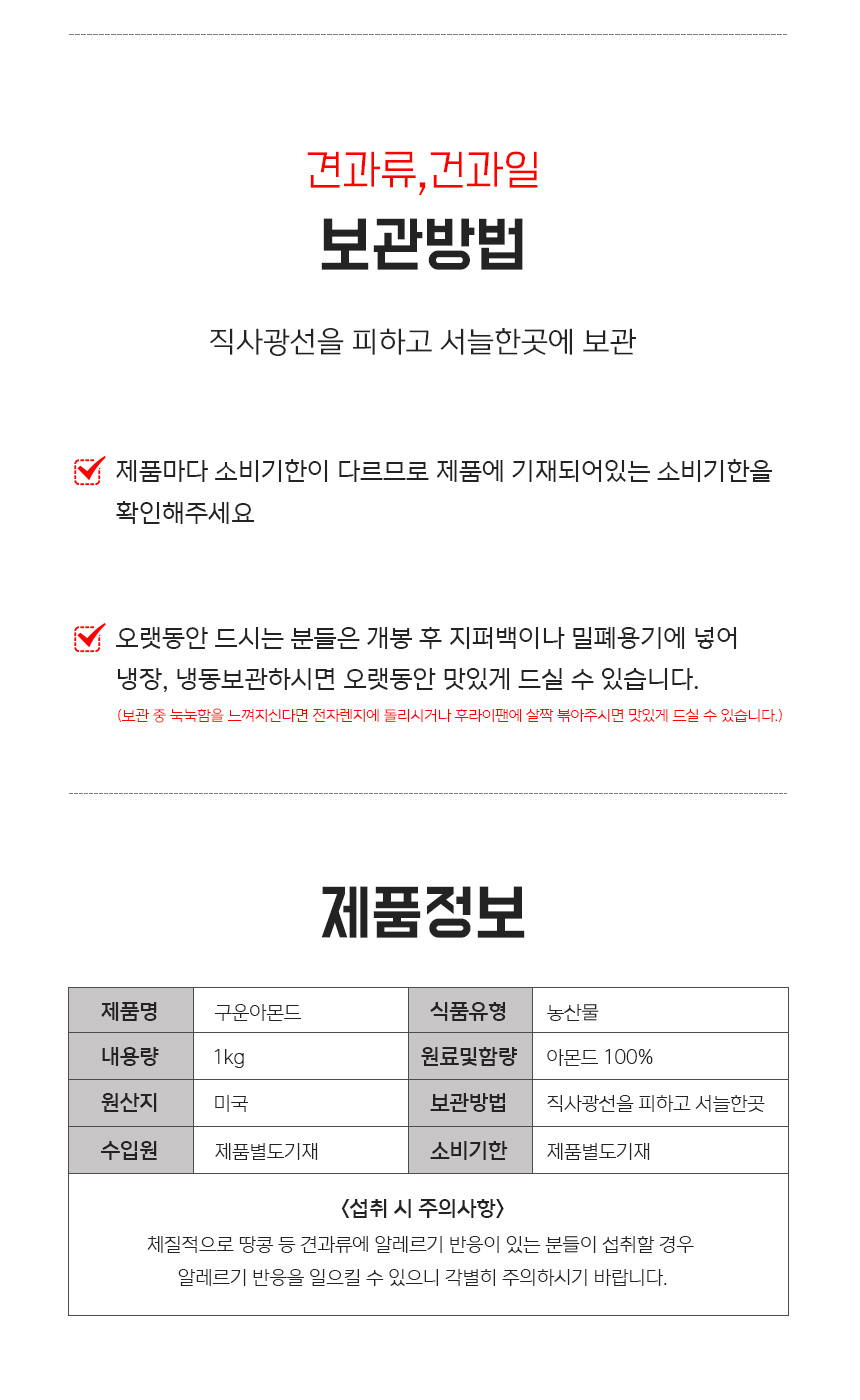 • 24년 수확 미국산 구운아몬드 1kg 볶음 볶은아몬드 무염 견과류