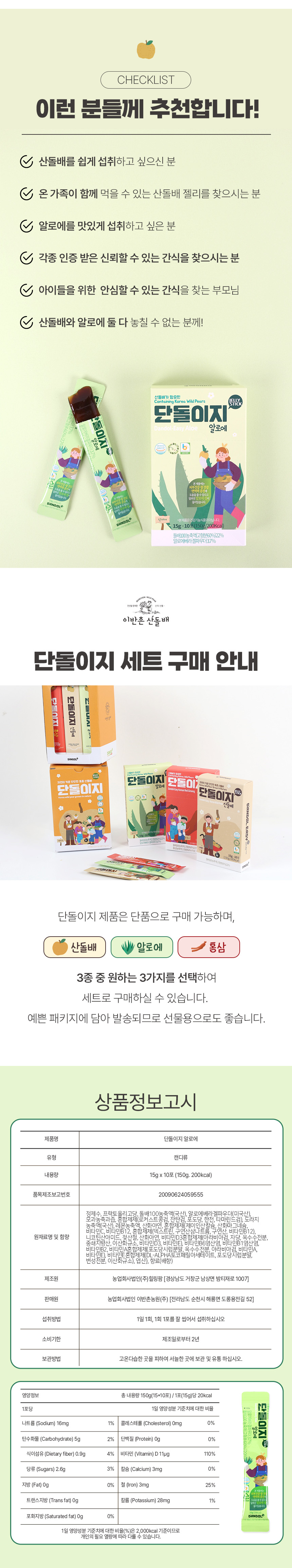 • [이반촌농원] 단돌이지 알로에 젤리스틱 15g*10포
