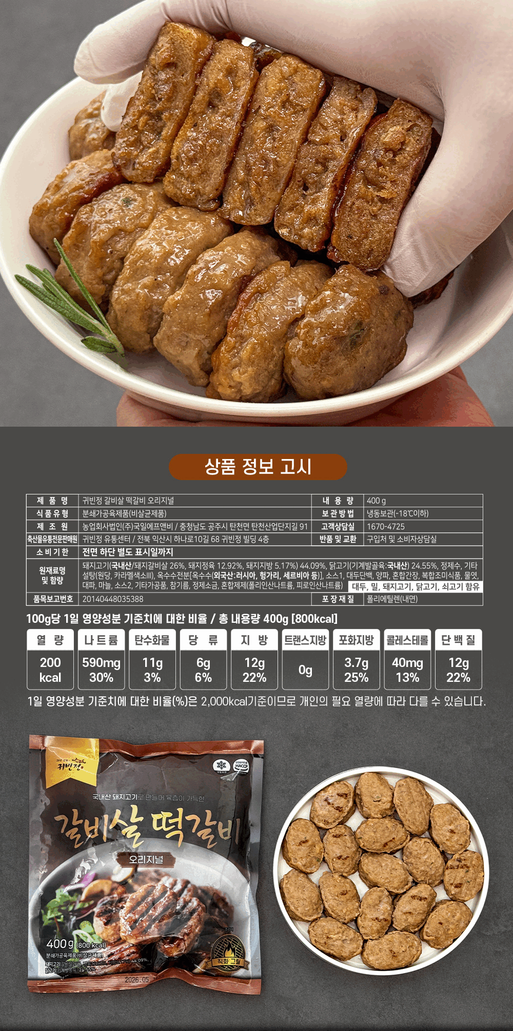 • 떡갈비 오리지널400g*2팩+청양오리지널400g*1팩