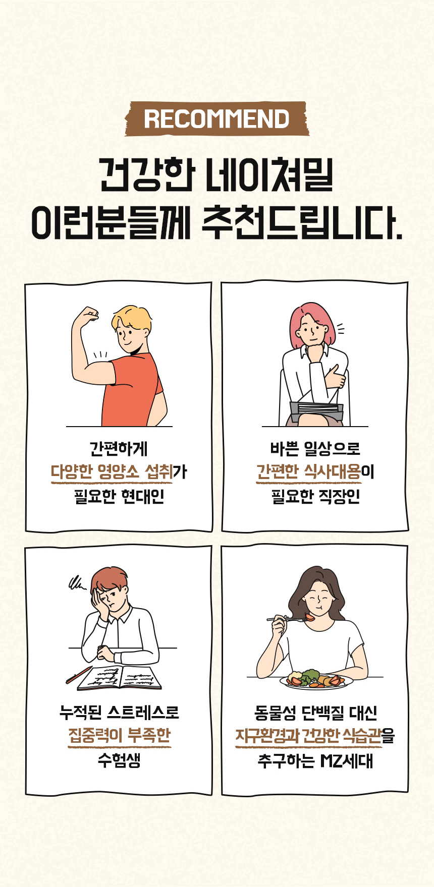 가볍게 시작하는 나의 하루, 저당 설계 95kcal 100% 식물성음료 네이쳐밀 한 잔이면 충분해요