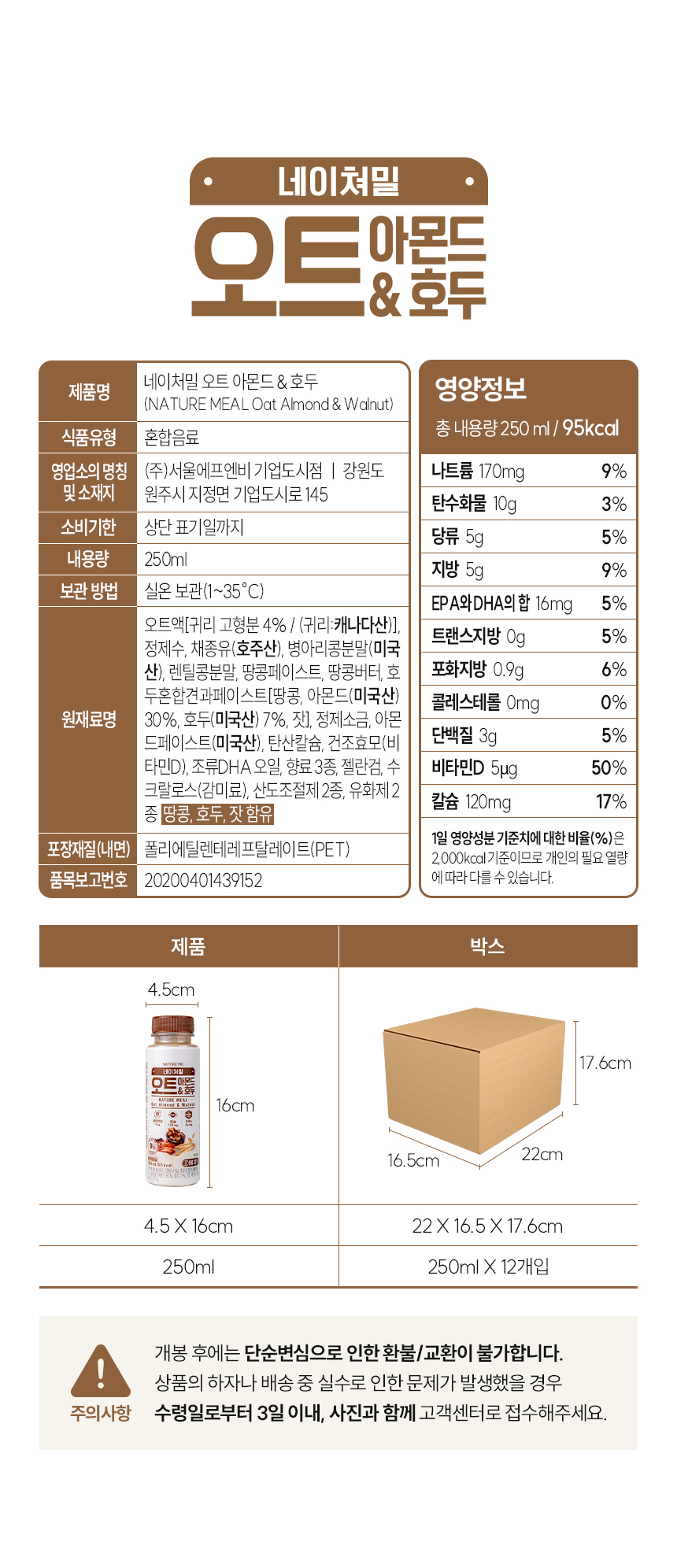 • 네이쳐밀 오트 아몬드&호두 (250ml*12개입)