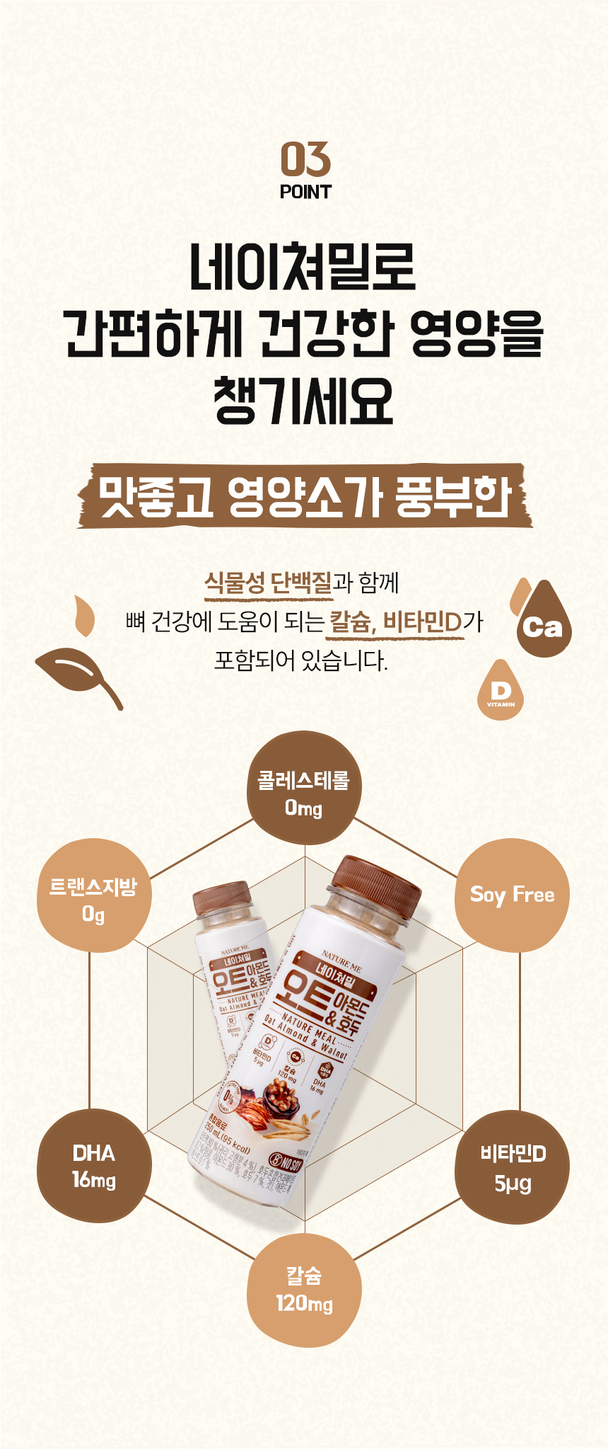 칼슘, 비타민D, 식물성 DHA까지 담은 네이쳐밀 오트 아몬드&호두!