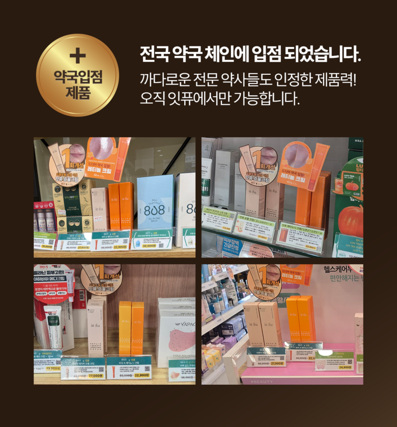 - [약국 입점/신뢰] 까다로운 약국 입점 절차를 통과한 검증된 포뮬러! 민감해진 피부를 위해 약사가 추천하는 리페어 테라피를 집에서 경험하세요.