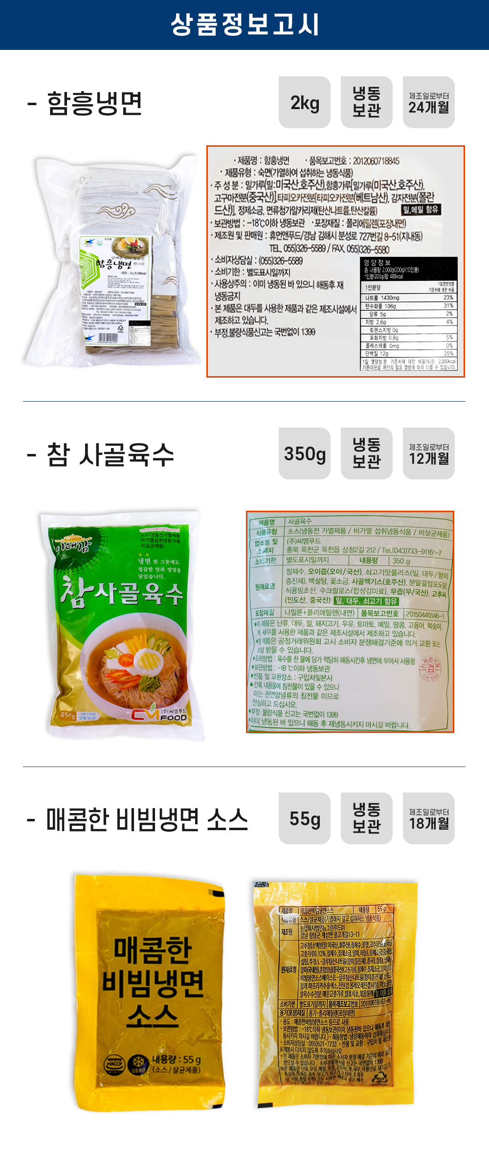 냉면비빔장 : 냉동 1년 6개월