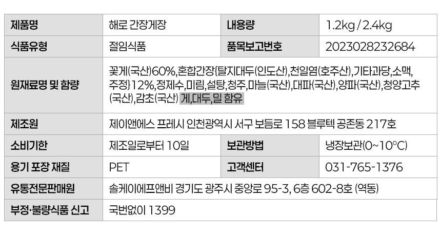 • 연평도 국내산 간장게장 2.4kg