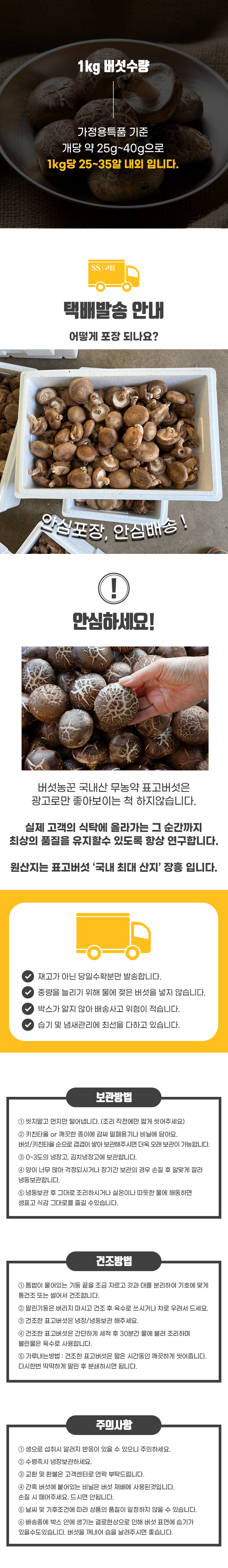 장흥 생표고버섯 1kg 가정용특품