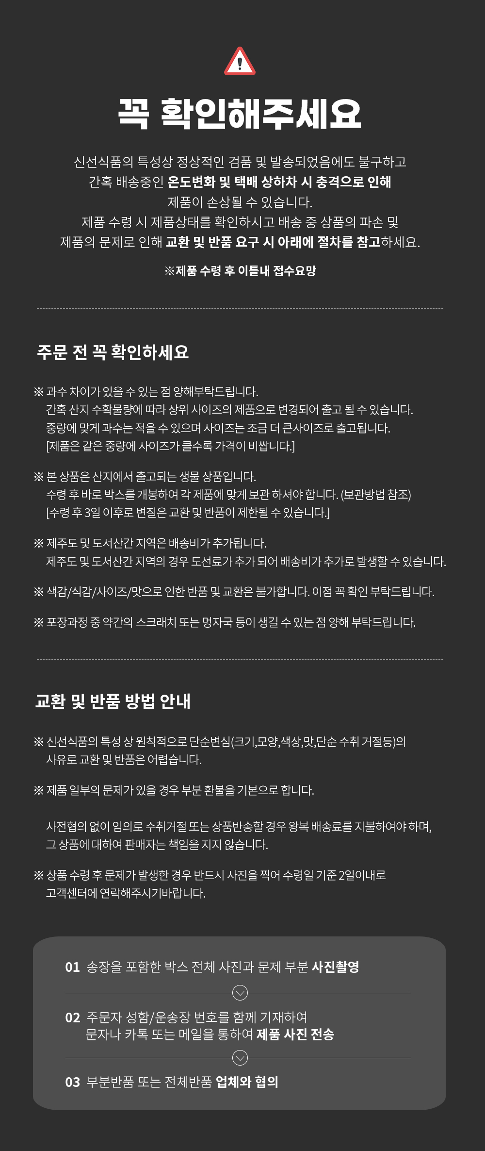 신선식품으로 가급적 빠른 섭취 바랍니다.