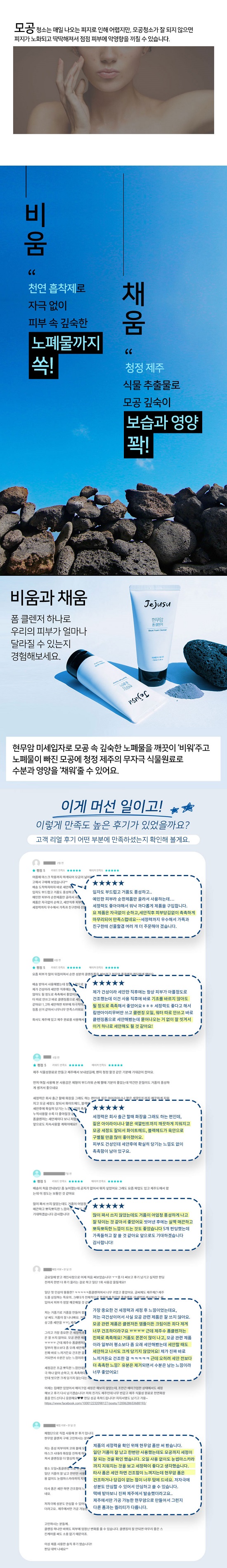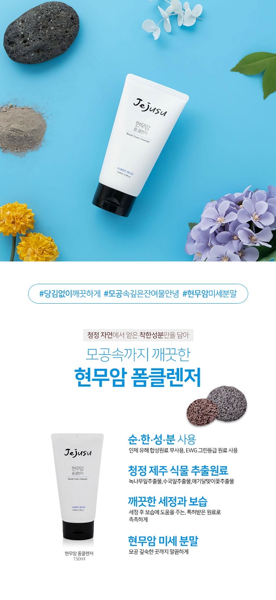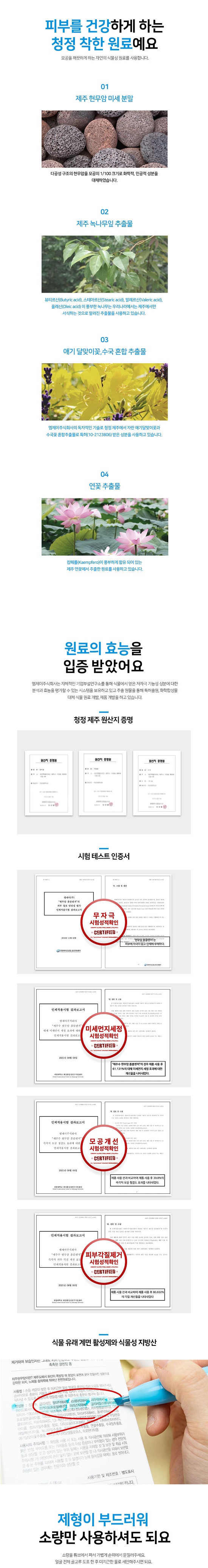 정제수, 글리세린, 팔미틱애씨드, 스테아릭애씨드, 라우릭애씨드, 포타슘하이드록사이드, 코카미도프로필베타인, 미리스틱애씨드, 글리세릴스테아레이트, 피이지-100스테아레이트, 비즈왁스, 하이드록시아세토페논, 카프릴릴글라이콜, 다이프로필렌글라이콜, 다이포타슘글리시리제이트, 아라키딕애씨드, 올레익애씨드, 소듐클로라이드, 카프릭애씨드, 1,2-헥산다이올, 화산재(제주현무암2,000ppm), 부틸렌글라이콜, 컴프리잎추출물, 향료, 다이소듐이디티에이, 알란토인, 나이아신아마이드, 에틸헥산다이올, 녹차잎추출물, 포트마리골드추출물, 연꽃추출물, 수국잎추출물, 애기달맞이꽃추출물, 하이드록시에틸셀룰로오스, 프로판다이올