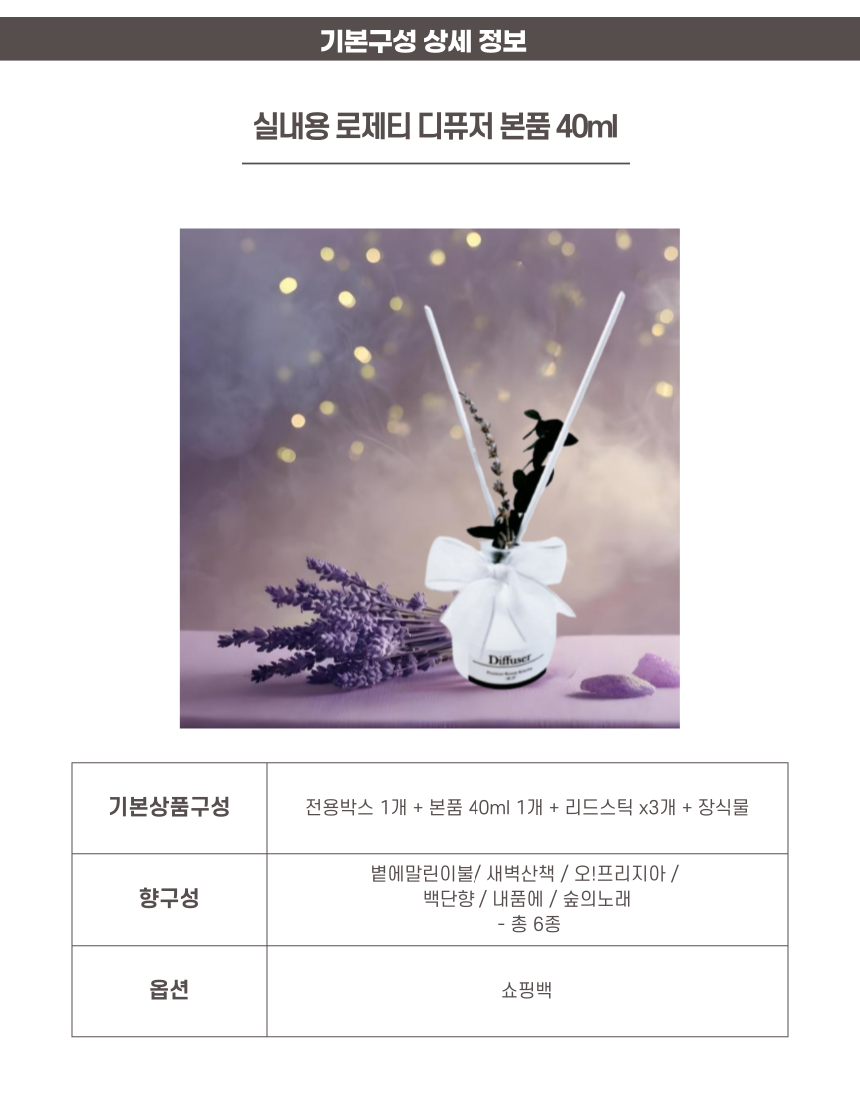 • 공간을향기롭게 로제티 백단향 디퓨저 40밀리 외 실내용 차량용