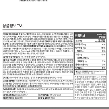 [섭취 시 주의사항] ① 이상사례 발생 시 섭취를 중단하고 전문가와 상담하십시오. ② 소비기한을 확인하시기 바라며, 섭취량 및 섭취방법을 확인 후 섭취하시기 바랍니다. ③ 특이체질 등 알레르기 체질인 경우에는 성분을 확인하신 후 섭취하십시오. ④ 임산부, 수유부 및 영-유아-어린이는 섭취 전 전문가와 상담하시기 바랍니다. ⑤ 원료 특성상 침전물이 발생할 수 있으나 이는 자연적인 현상이므로 안심하시고 섭취하십시오. ⑥ 소비기한 경과, 포장재 변형, 팽창, 손상이 되었거나 내용물이 변질되었을 경우 섭취하지 마십시오. ⑦ 개봉 또는 섭취 시 포장재에 의해 상처를 입을 수 있으니 주의하시기 바랍니다. ⑧ 개봉 후에는 변질될 수 있으므로 바로 섭취하시기 바랍니다. ⑧ 개봉 후에는 변질될 수 있으므로 바로 섭취하시기 바랍니다.
