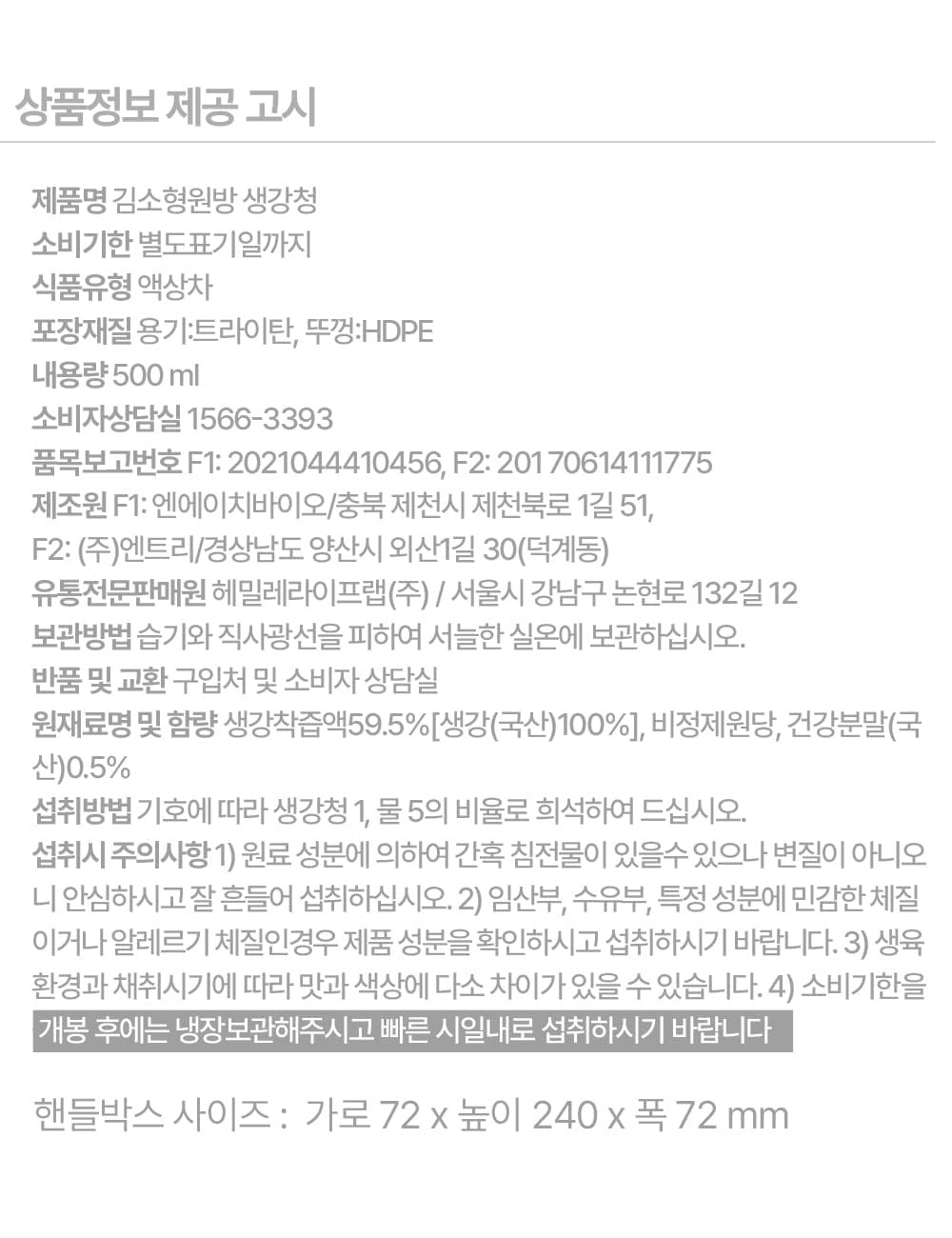 김소형원방 100% 국내산 생강 진한 생강청