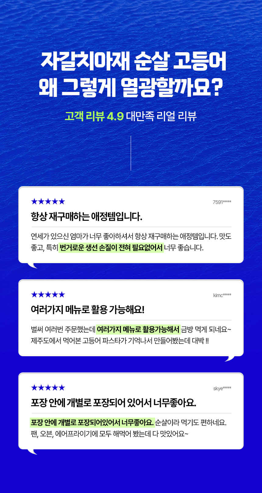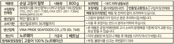 [재호식품] 순살고등어필렛 800g(5-6미, 7-9미)