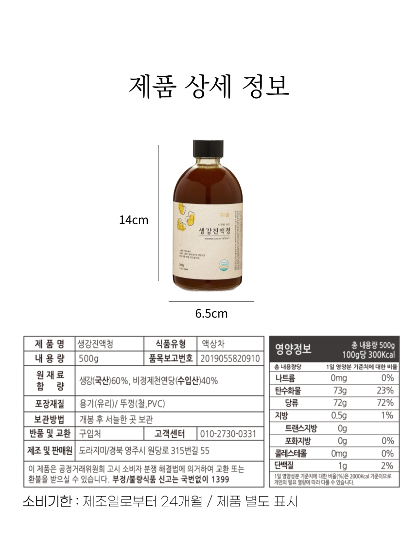 도라지미 생강청 수제 국산 생강 진액청 500g