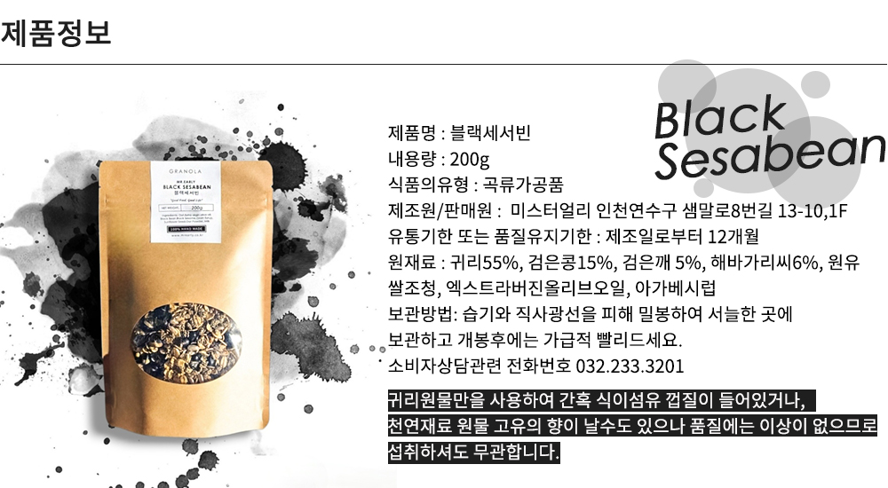 • 진한고소함 흑임자서리태 무설탕 저당 오트밀 그래놀라200g