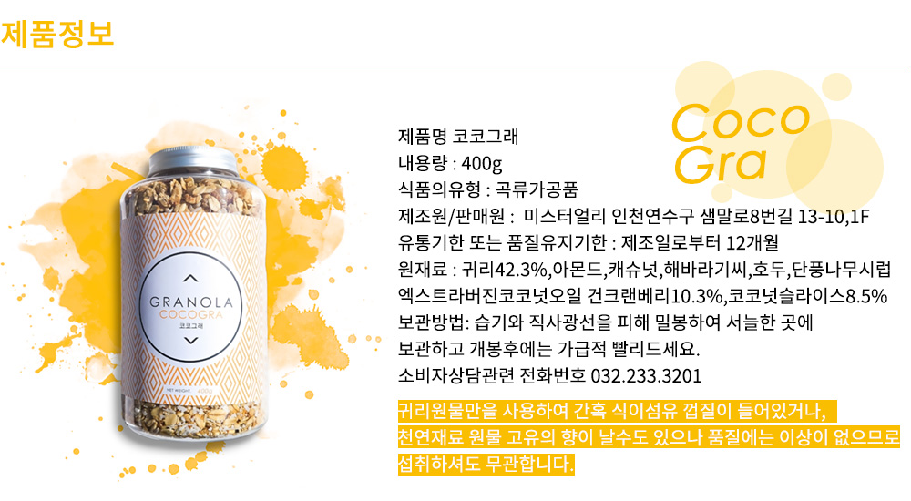 • 리얼코코넛듬뿍 무설탕 저당 오트밀 그래놀라400g