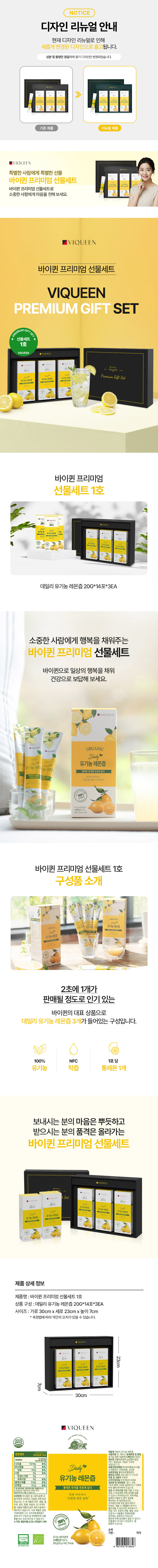 • 바이퀸 1일 1레몬 데일리 유기농 100% 레몬즙 선물세트(3개입)