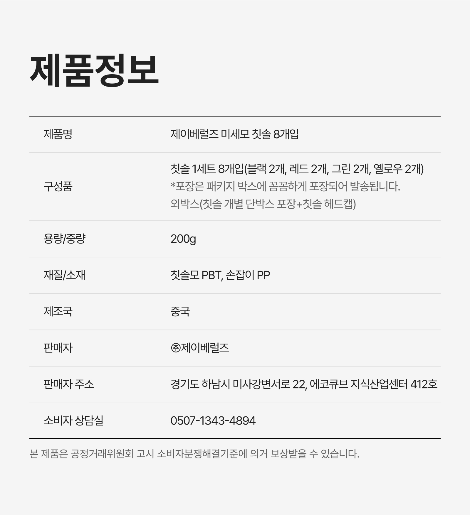 전자상거래 등에서의 상품정보 제공 고시에 따라 작성되었습니다.