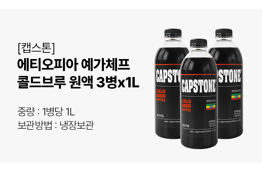• [캡스톤] 에티오피아 예가체프 콜드브루 더치커피 원액 3병x1L