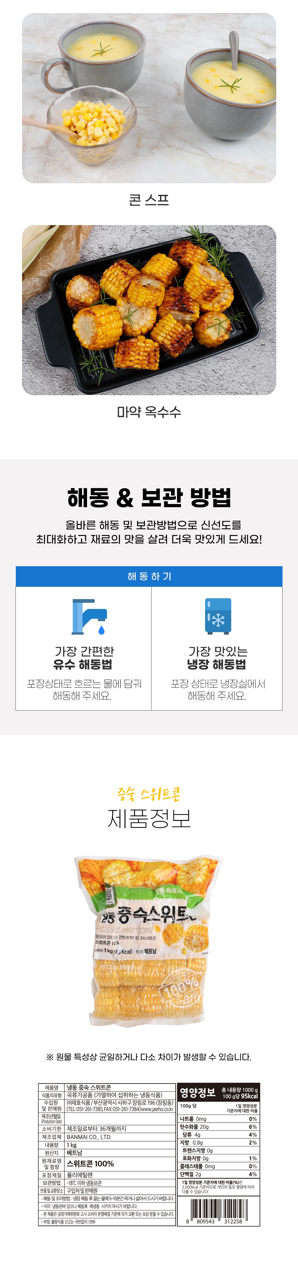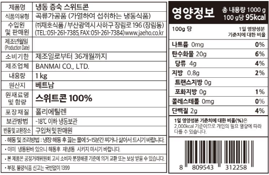 [재호식품] 증숙 스위트콘 (자숙, 절단옥수수) 1kg, 냉동