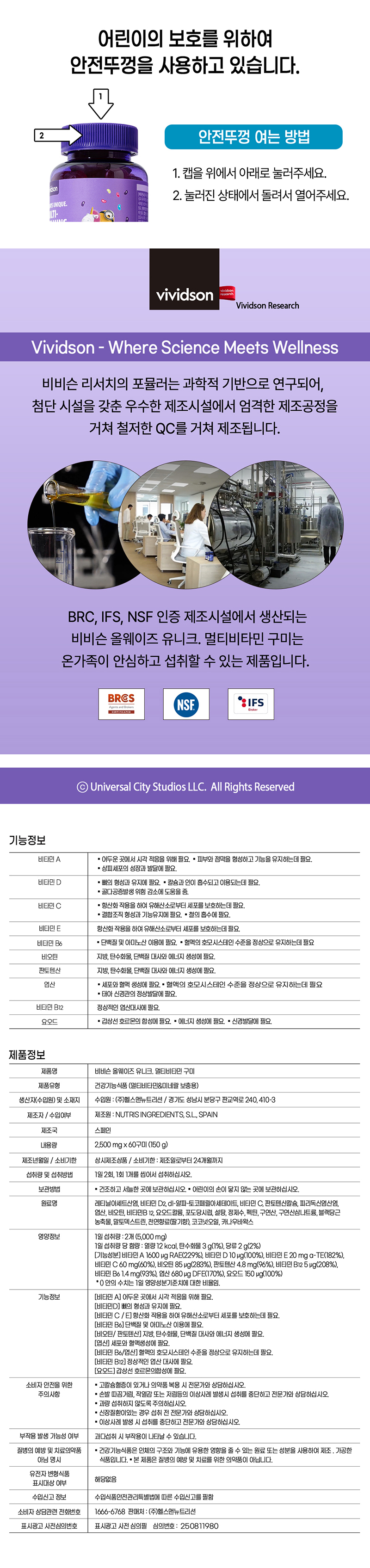 미니언즈x비비슨 올웨이즈 유니크 멀티비타민 구미 식물성젤리(60구미)