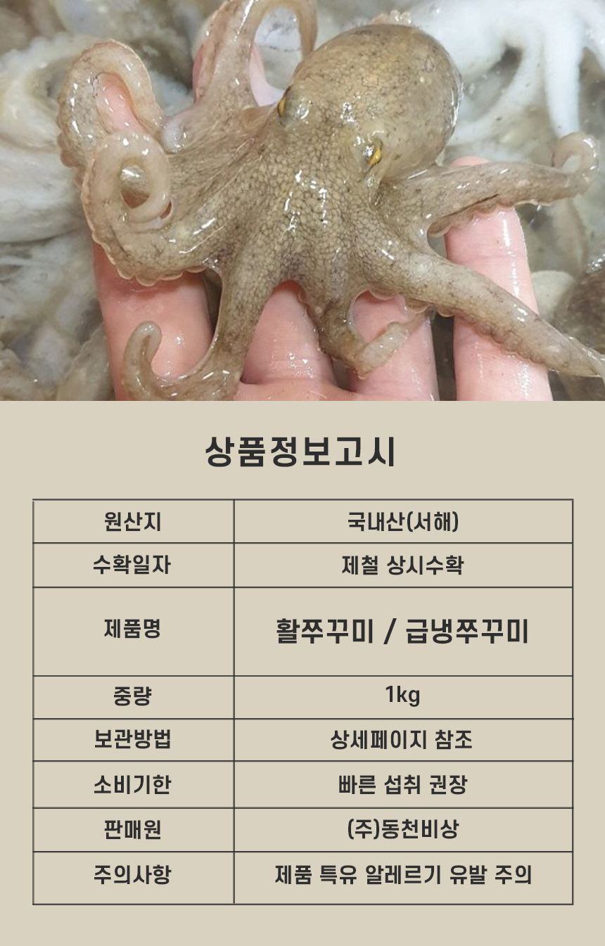 제철 쭈꾸미 싱싱한 서해안 활 생물쭈꾸미 / 급냉쭈꾸미 국내산 1kg