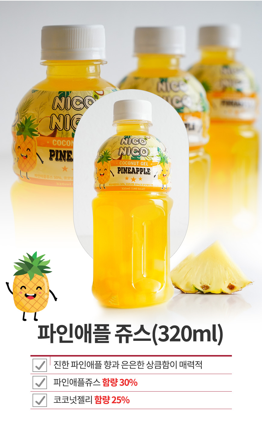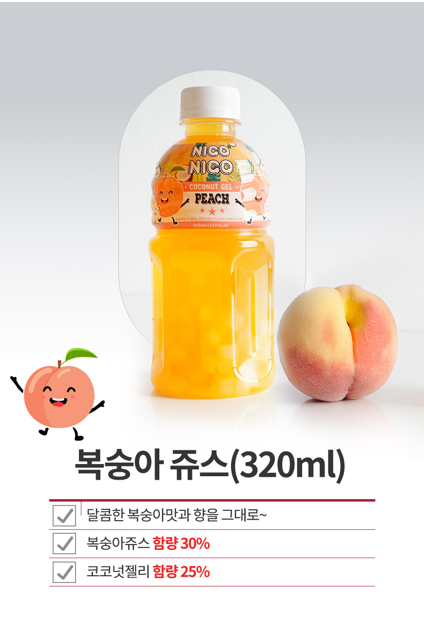 니코니코 코코넛 젤리 과일 주스 320ml (딸기,리치,망고,복숭아,파인애플)
