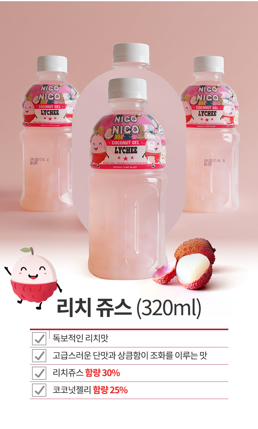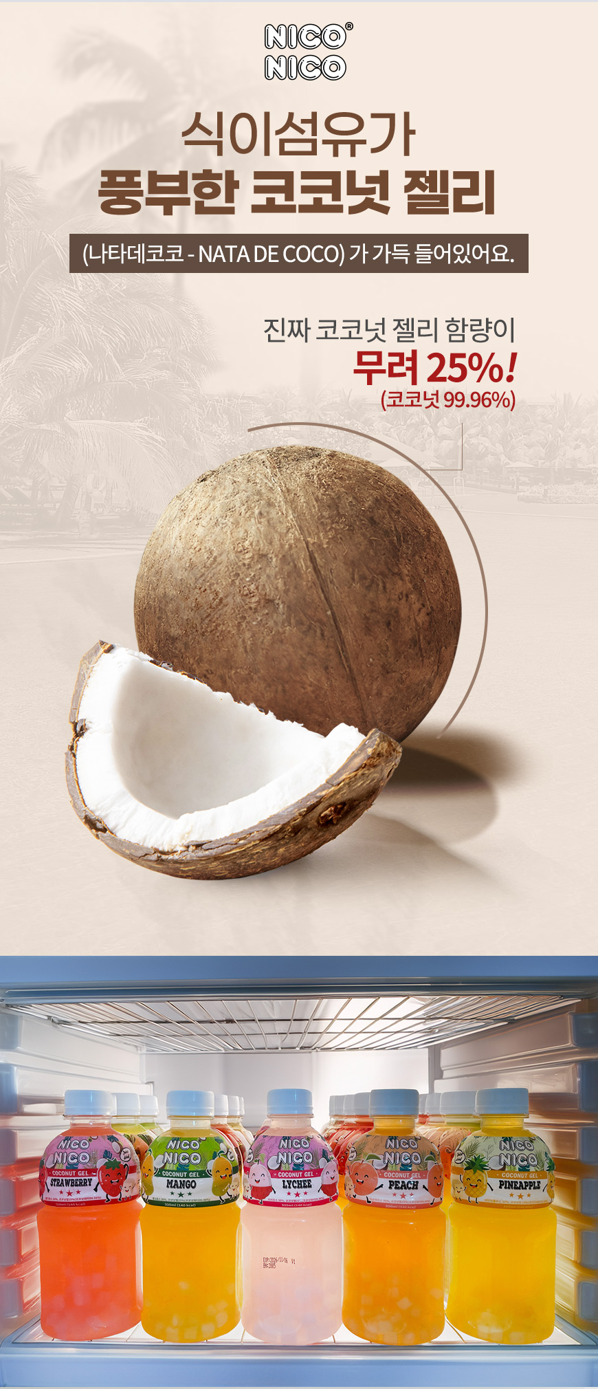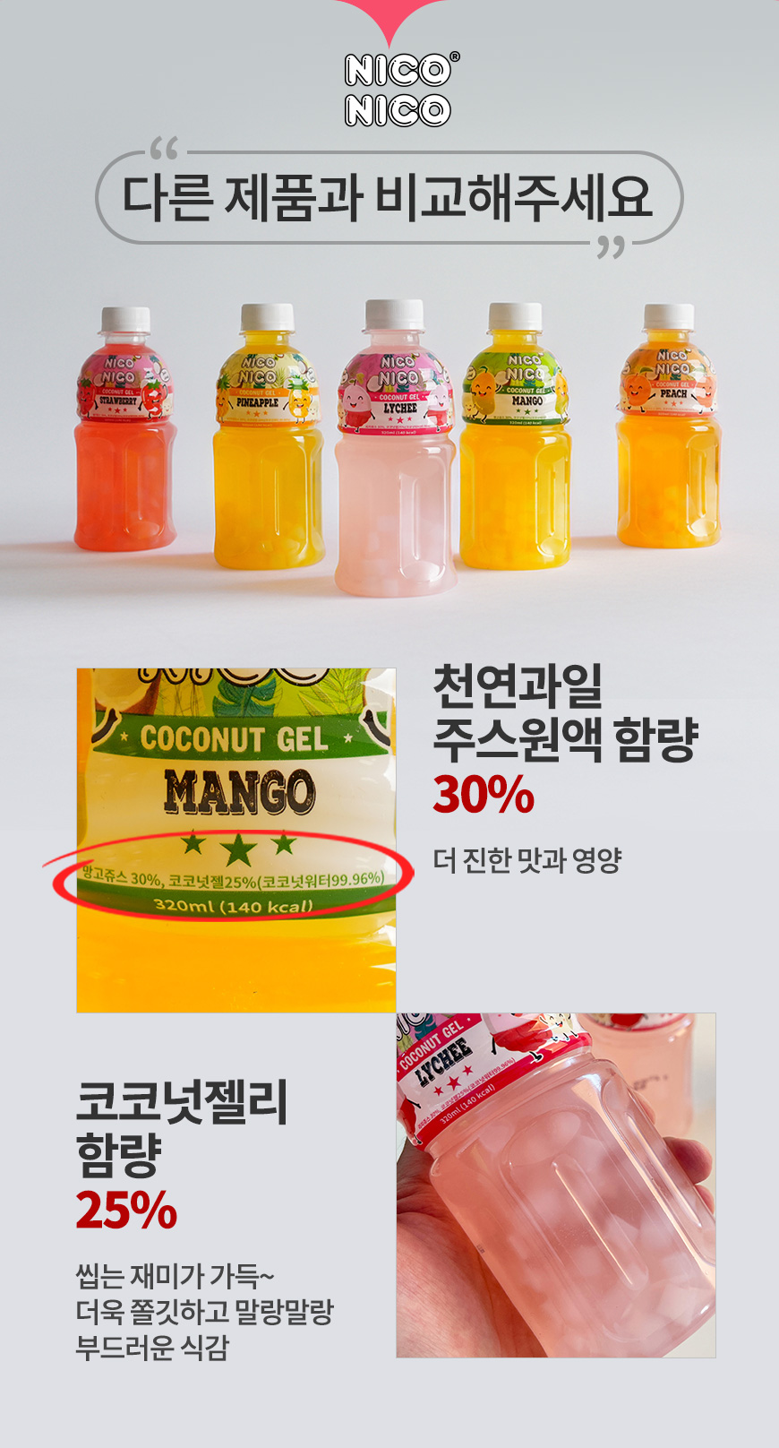 과일주스 함량 30%+코코넛젤리 25%의 깊고 달콤한 맛!