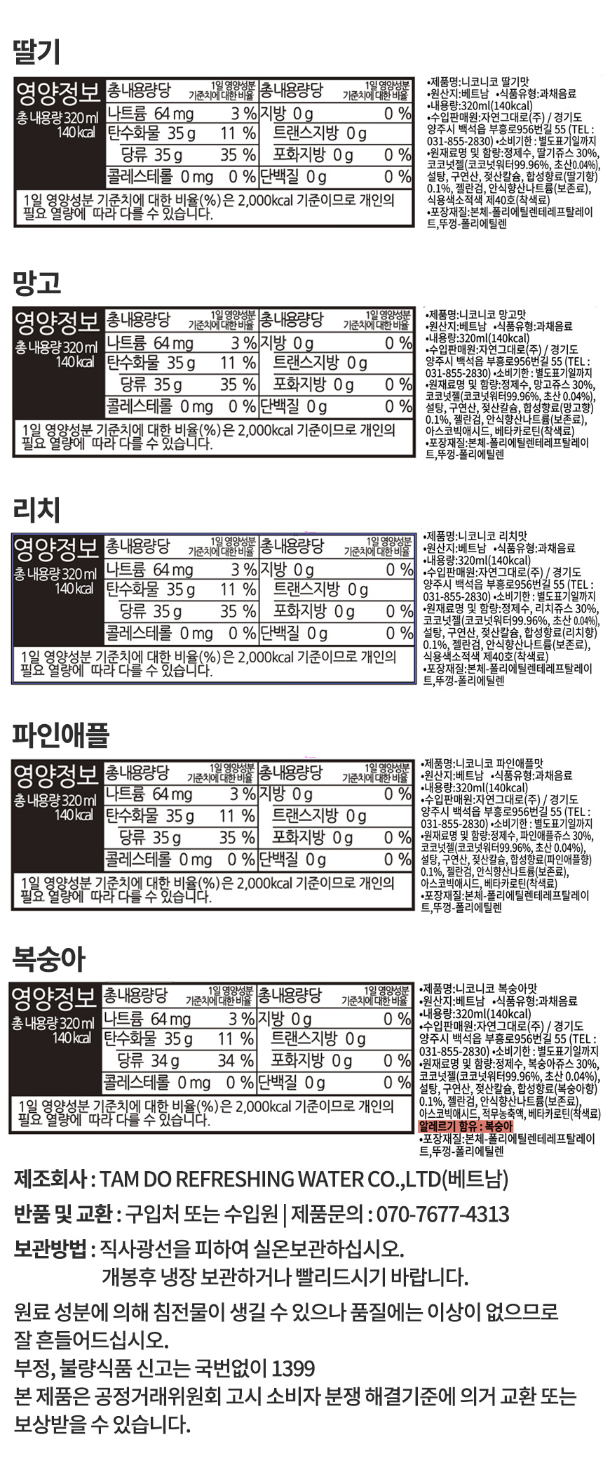 니코니코 딸기맛/망고맛/리치맛/파인애플맛/복숭아맛