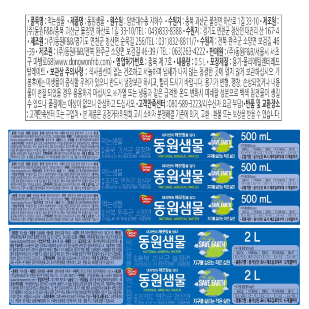 • 동원샘물 무라벨 생수 (2Lx12개/24개) 샘물