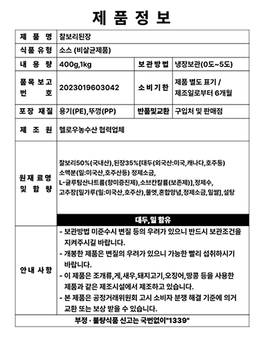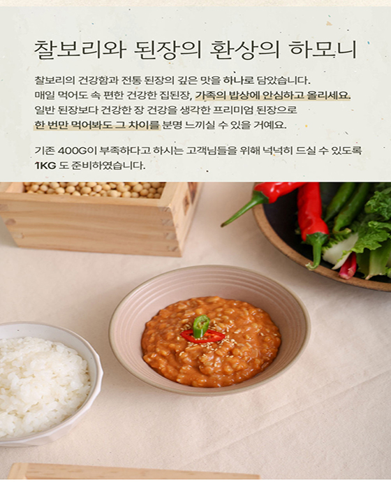 • 1+1 국내산 우리농촌 찰보리된장 400g,1kg