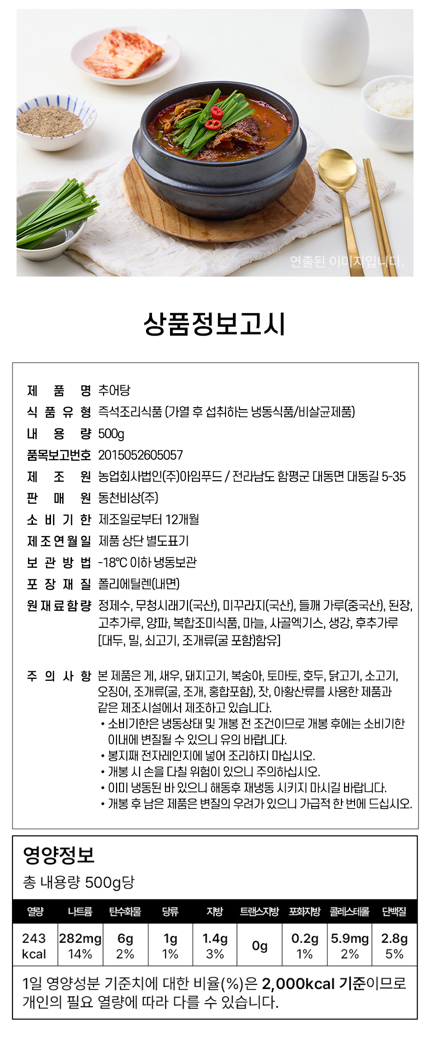 • 남도식 깊은맛 국내산 미꾸라지 밥꾹 추어탕 500g 2팩