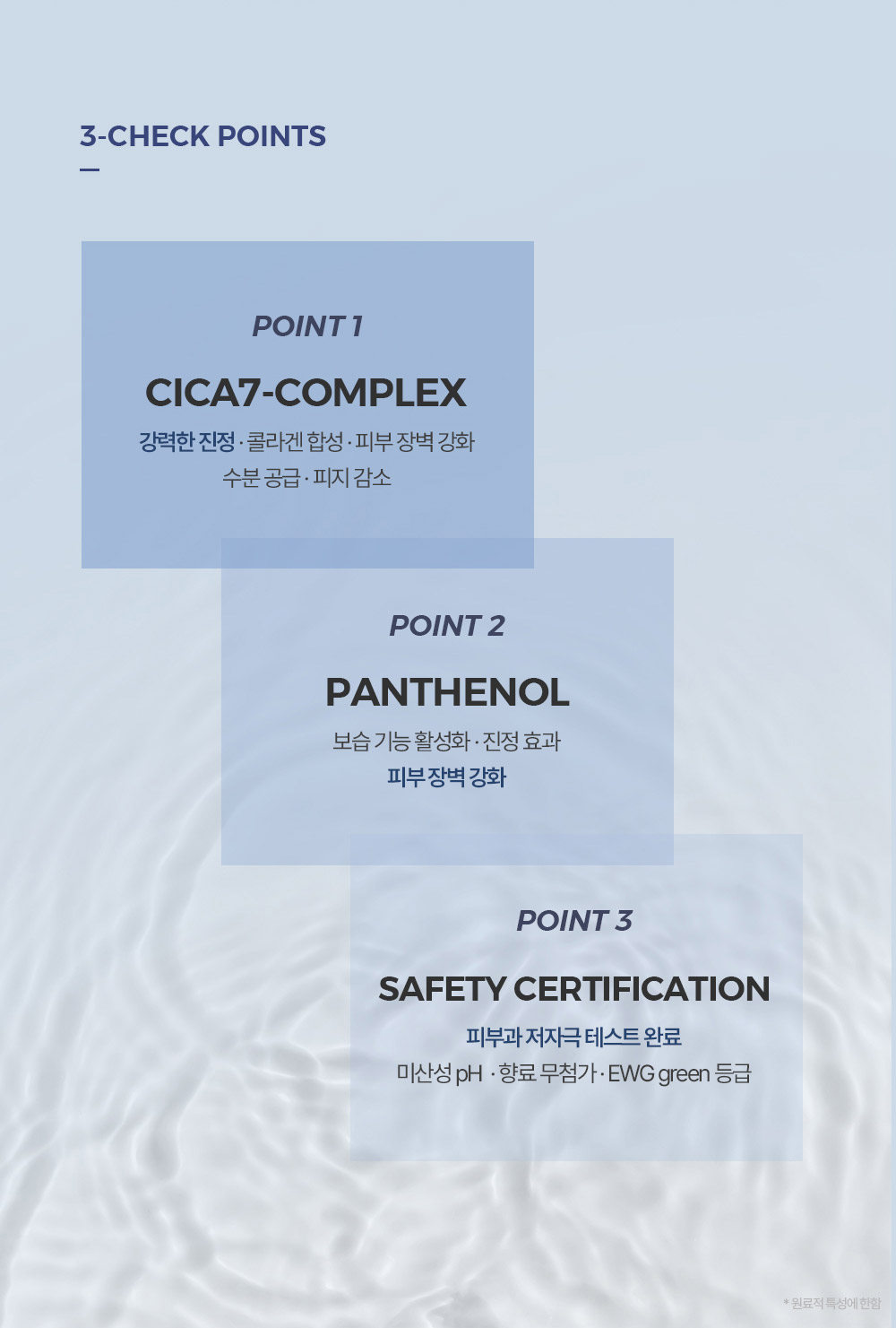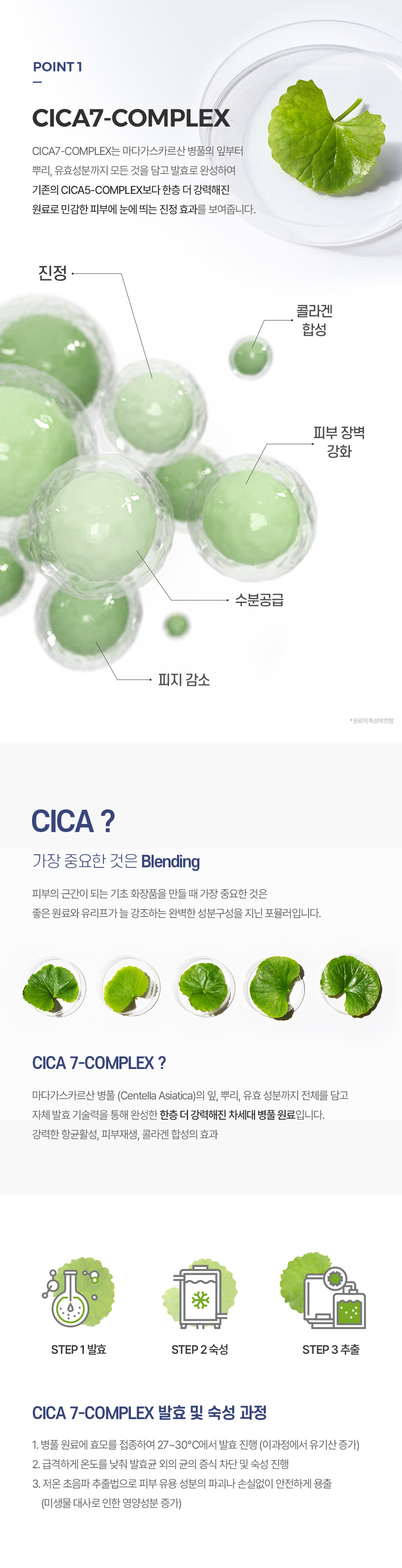정제수, 메틸프로판다이올, 부틸렌글라이콜, 1,2-산다이올, 글리세레스-26, 글리세린, 쇠비름추출물, 병풀추출물, 무화과추출물, 병풀뿌리추출물, 병풀잎추출물, 하이드로제네 이티드레시틴, 소듐시트레이트, 판테놀, 시트릭애씨드, 다이소듐이디티에이, 세라마이드 엔피, 효모발효물, 마데카소사이드, 아시아티코사이드, 마데카식애씨드, 아시아틱애씨드, 하이드록시아세토페논, 에틸헥실글리세린