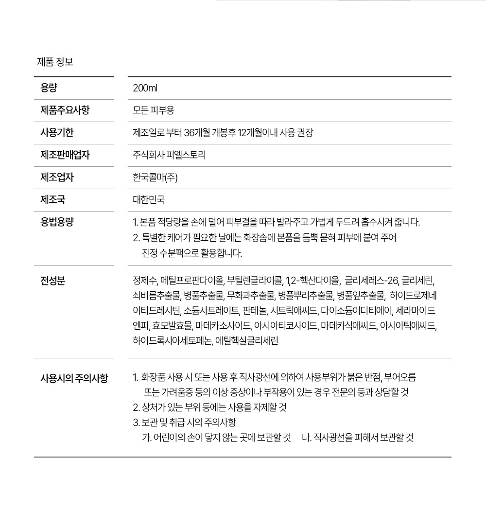 화장품제조업자 : 한국콜마(주) l 책임판매업자 : 주식회사 피엘스토리
