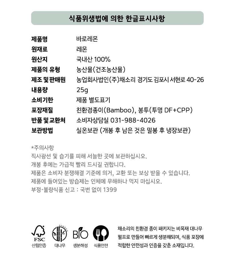 바로 레몬 25g (100% 국내산 건조 레몬)