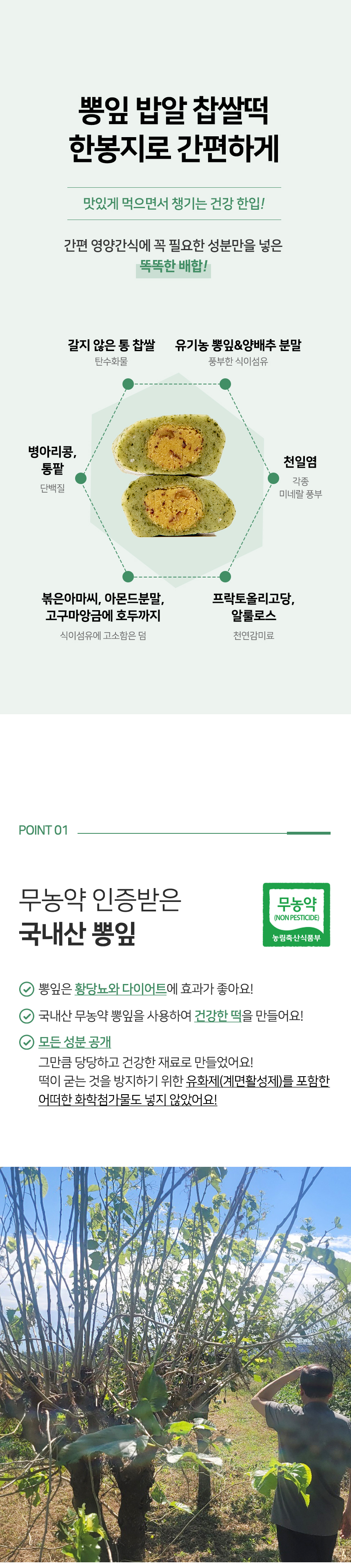 • 무설탕 뽕잎밥알찹쌀떡