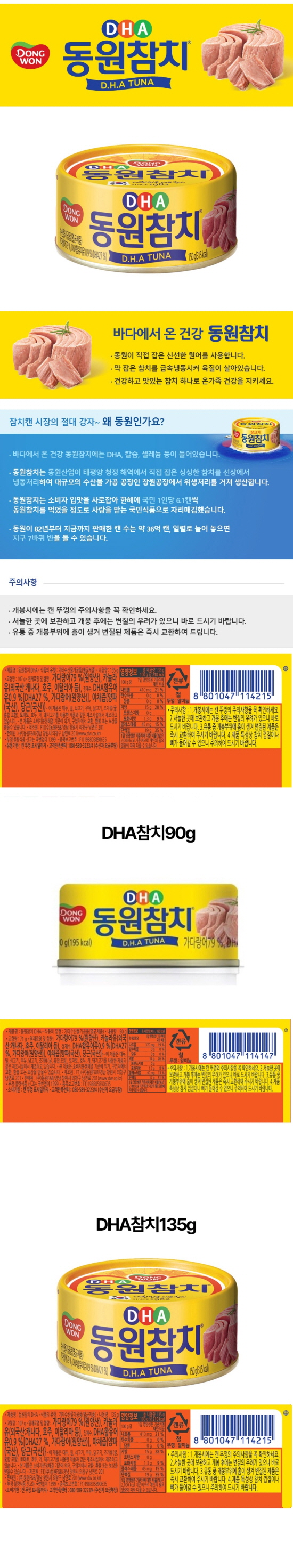동원참치 DHA참치 (135g/90gX16캔/8캔/4캔) 캔참치 참치캔