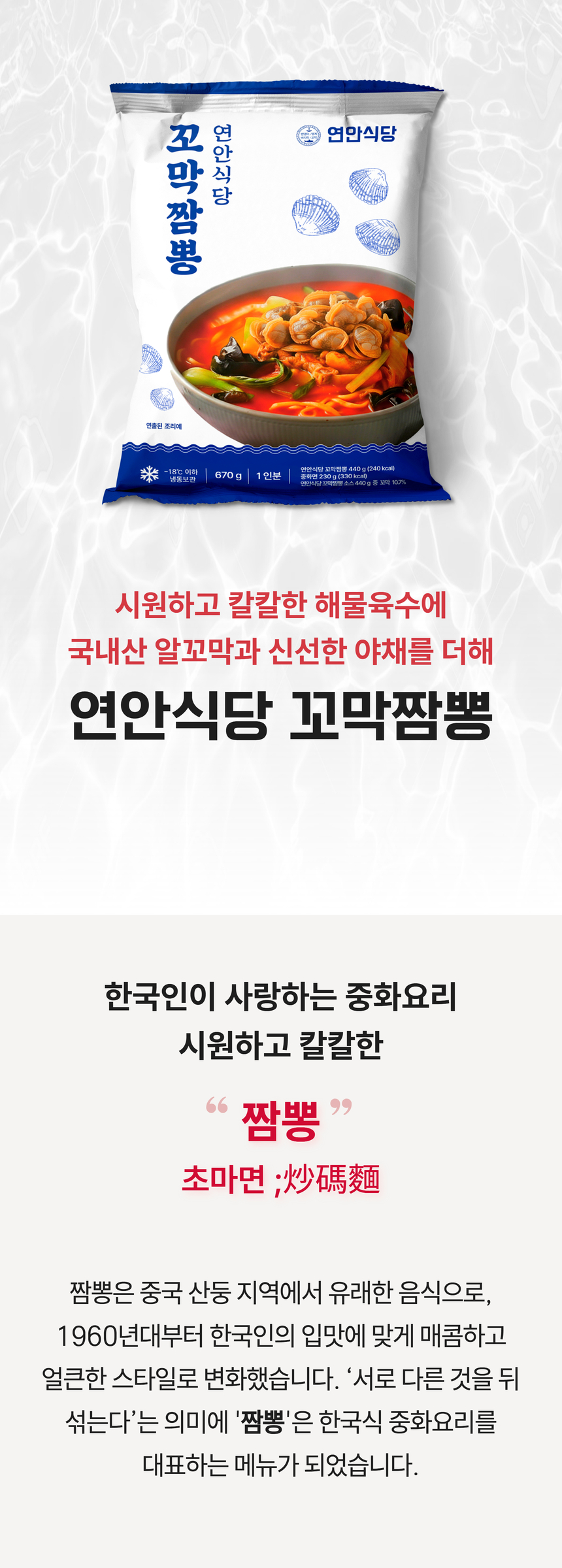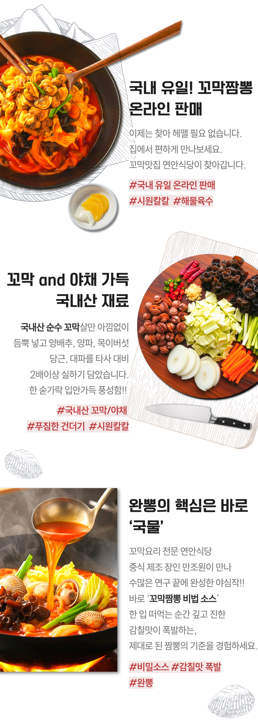 시그니처 꼬막 맛집 연안식당의 레시피 그대로! 국내산 꼬막 듬뿍 넣은 진짜 꼬막짬뽕, 집에서 맛집 그 맛을 즐기세요.
