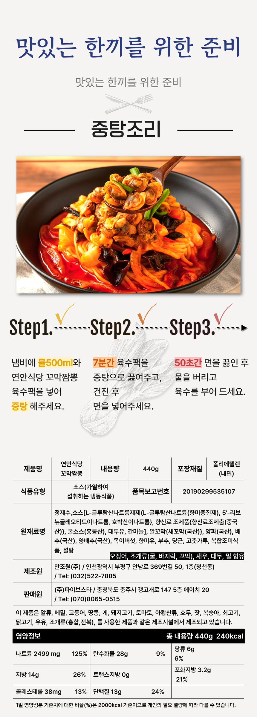 연안식당 꼬막짬뽕: 소스(가열하여 섭취하는 냉동식품)