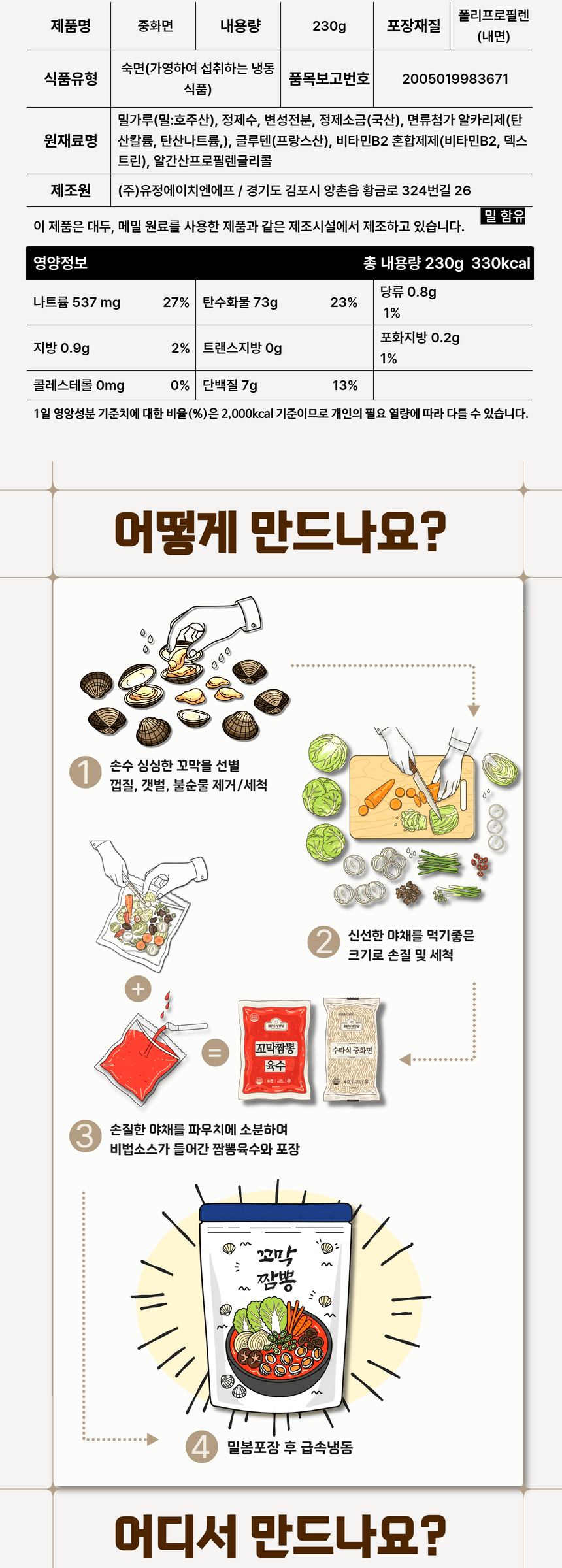 연안식당 꼬막짬뽕: 440g 중화면: 230g (10그램당 224 원)