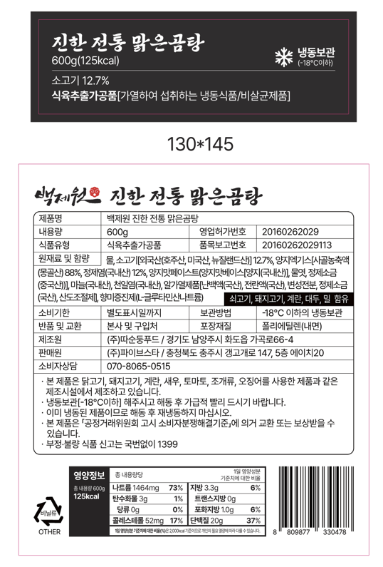 제조원: (주)따순둥푸드 / 경기도 남양주시 화도읍 가곡로 66-4