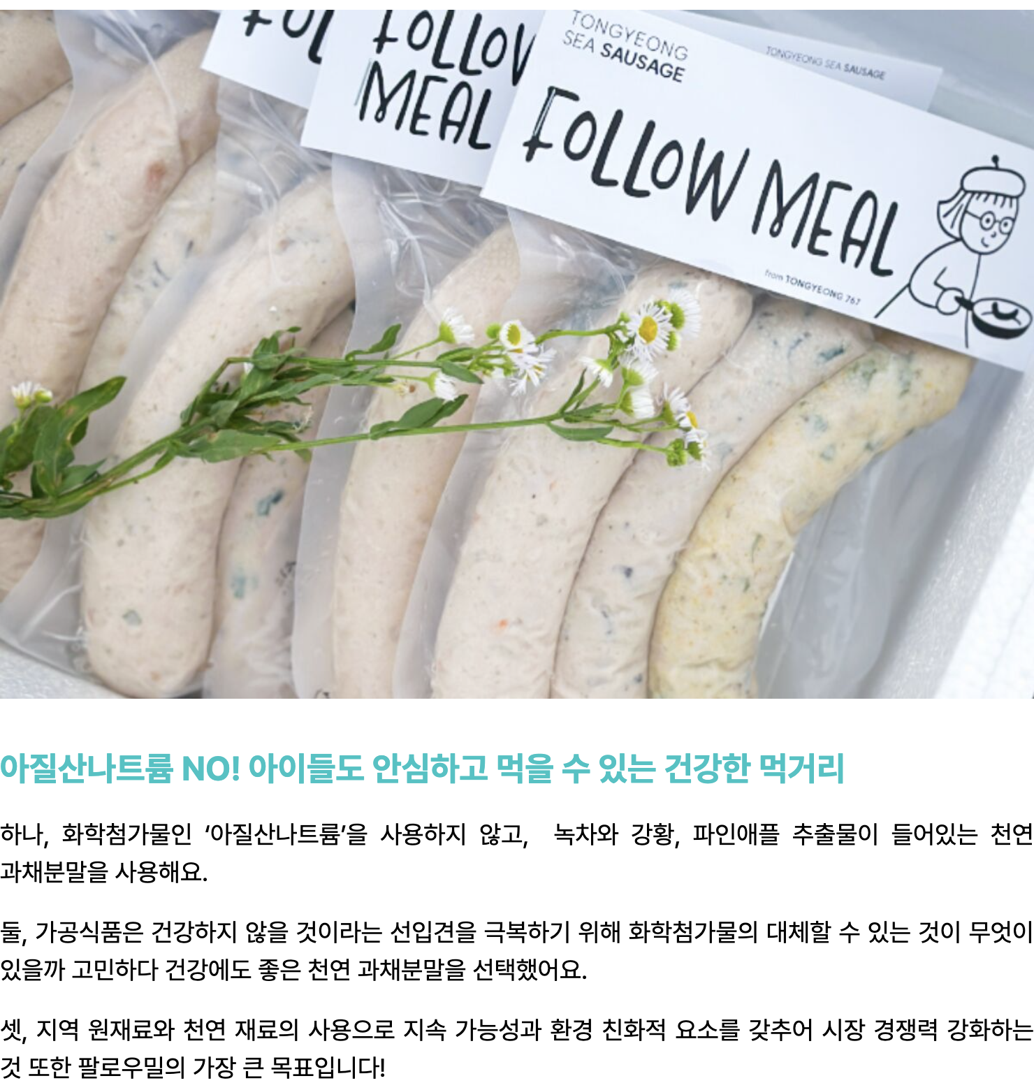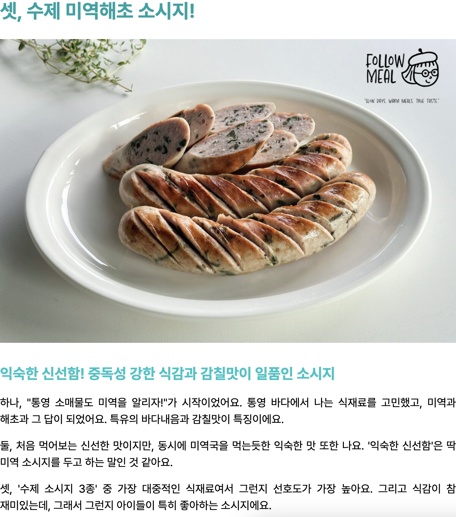 바다의 신선함을 느낄 수 있는 바다장어, 엔초비, 미역해초 수제소시지