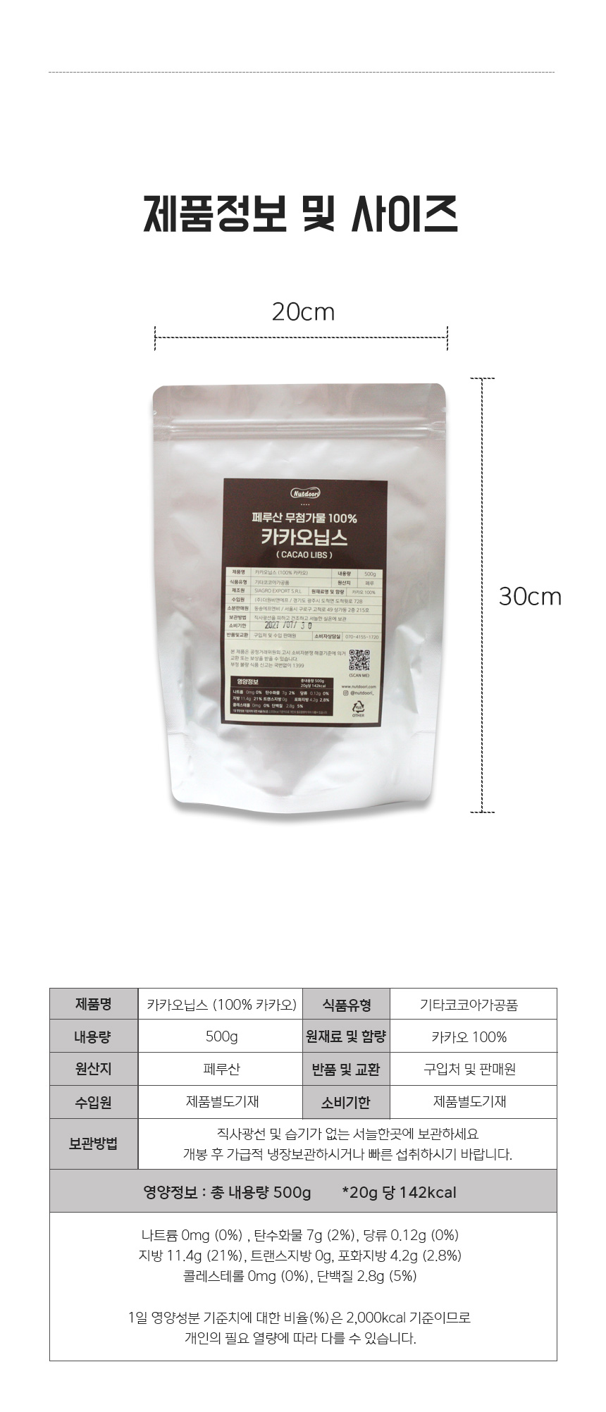 • 무설탕 100% 카카오닙스 500g 카카오분말 가루