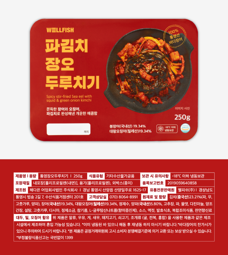 김치(중국산), 장어(국내산), 대왕오징어(칠레산), 양파(국내산)