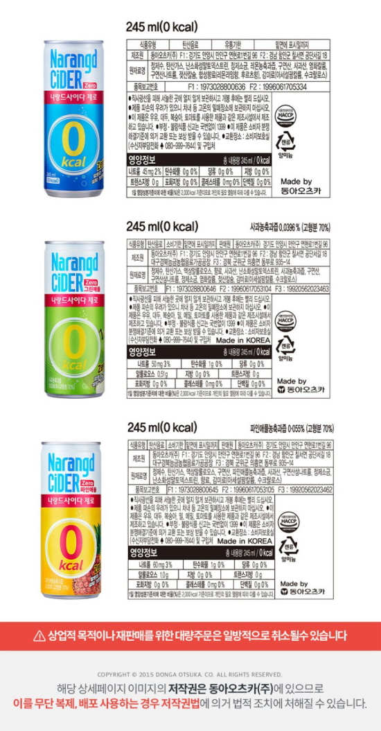 • 동아오츠카 나랑드사이다 245ml X 30캔  제로사이다 음료
