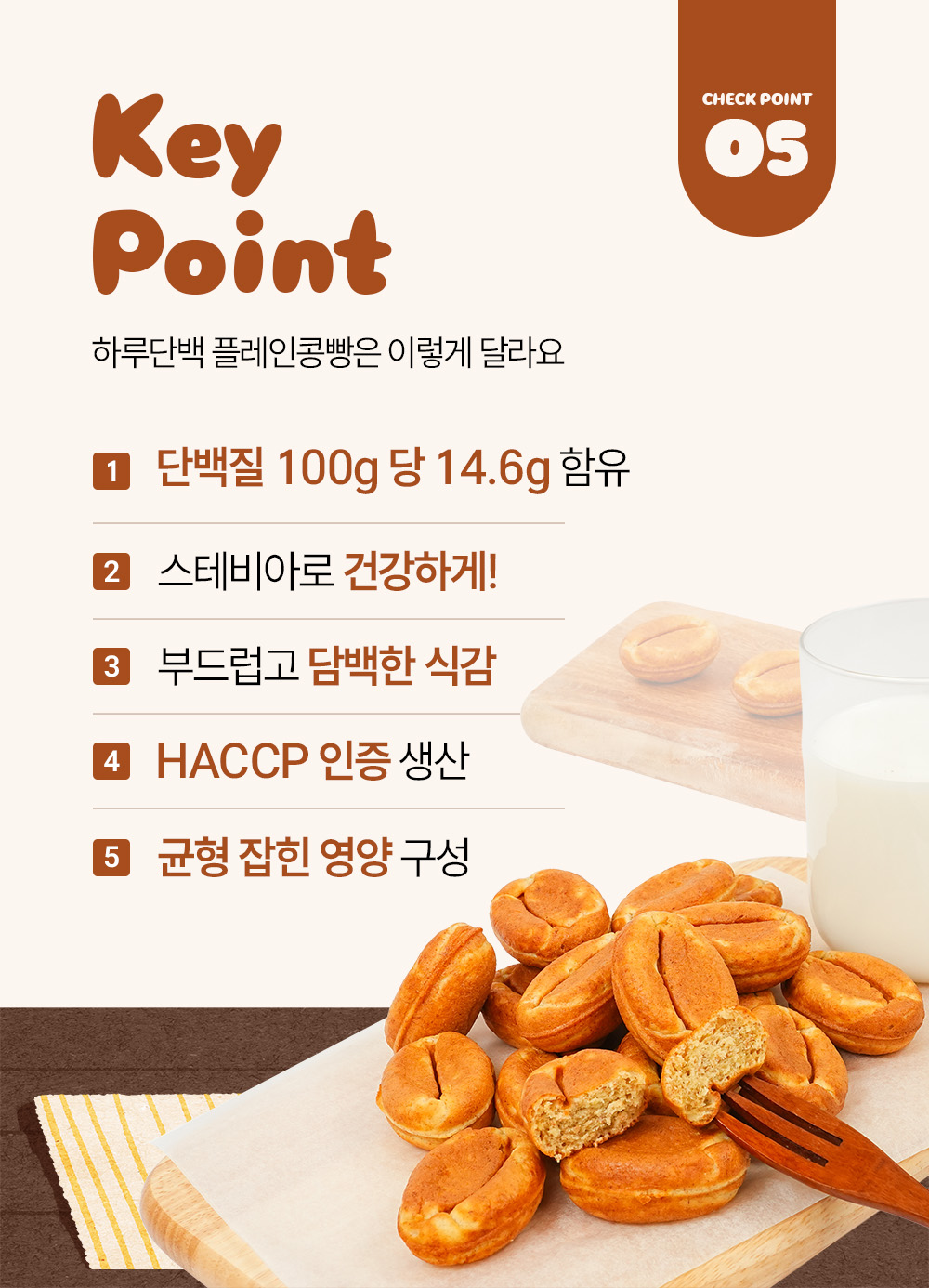 하루단백 플레인콩빵: 계란27.8%(국내산),통밀밀가루20.8%[밀가루1(밀:호주산,미국산),밀가루2(밀:호주산),볶음밀기울{밀기울(밀:호주산,미국산)},활성글루텐(호주산)],멸균우유16.7%(폴란드산),콩기름(대두유),아몬드파우더(아몬드,소맥분),분리대두단백(대두:중국산),혼합제제(에리스리톨,효소처리스테비아),프리믹스,버터,팽창제제